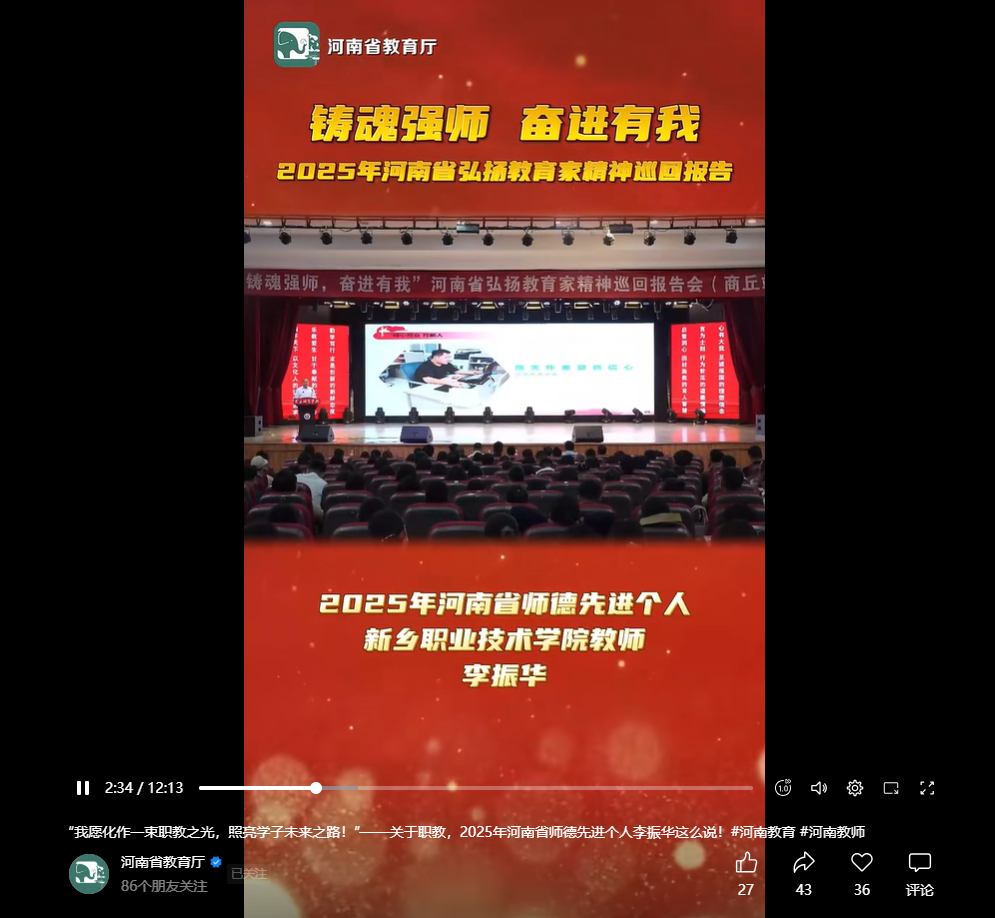 【河南省教育厅】"我愿化作一束职教之光,照亮学了未来之路!"——关于职教,2025年河南省师德先进个人李振华这么说!