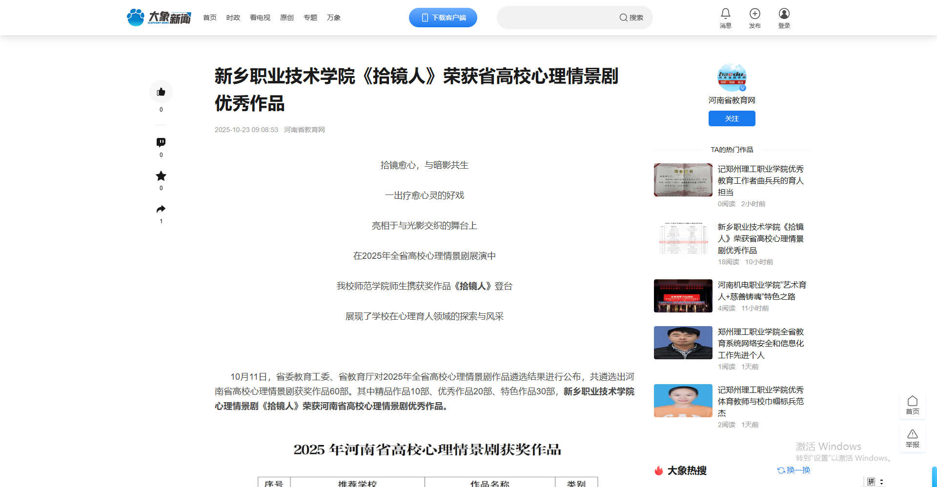 【大象新闻】新乡职业技术学院《拾镜人》荣获省高校心理情景剧优秀作品