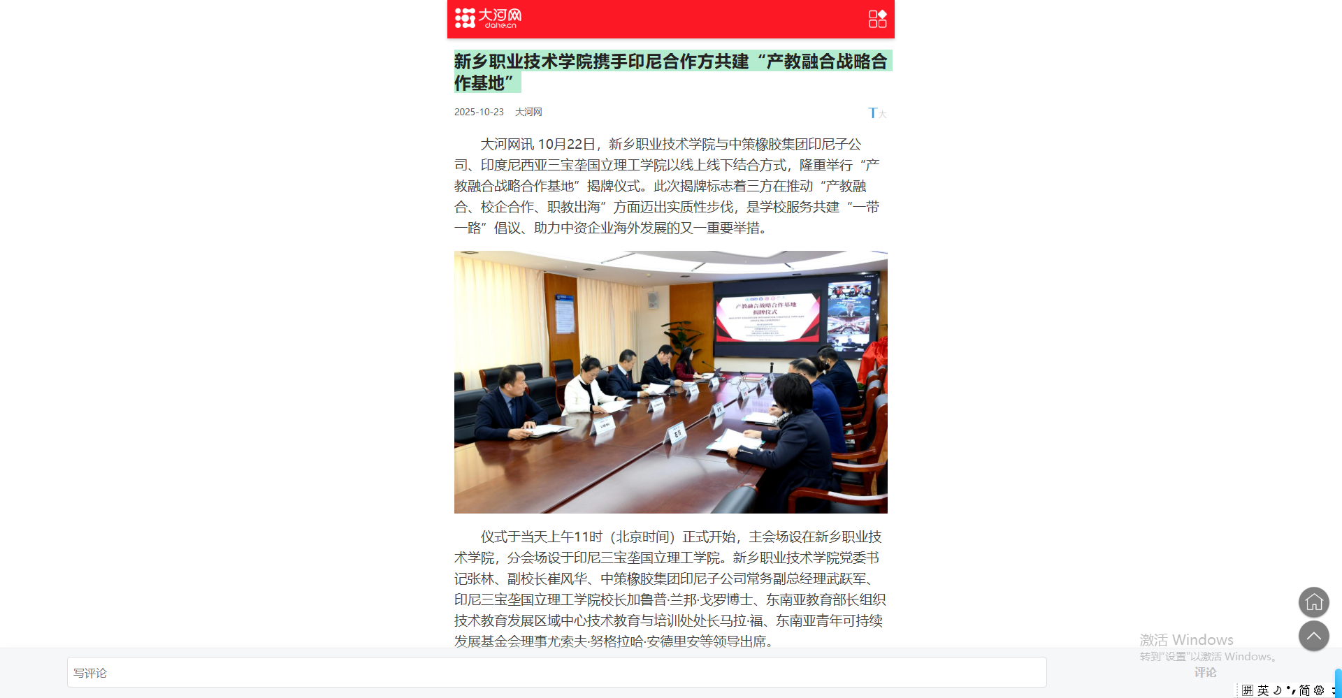 【大河网】新乡职业技术学院携手印尼合作方共建“产教融合战略合作基地”