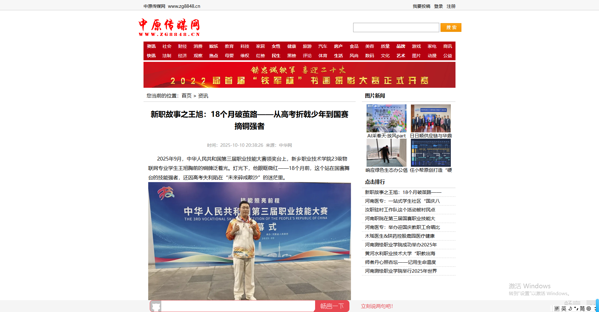 【中原传媒网】新职故事之王旭:18个月破茧路——从高考折戟少年到国赛摘铜强者
