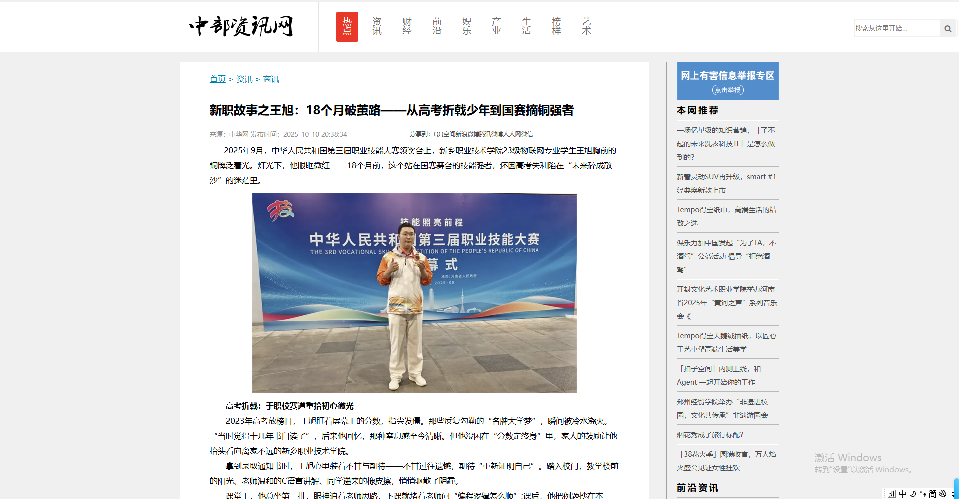 【中部资讯网】新职故事之王旭:18个月破茧路——从高考折戟少年到国赛摘铜强者