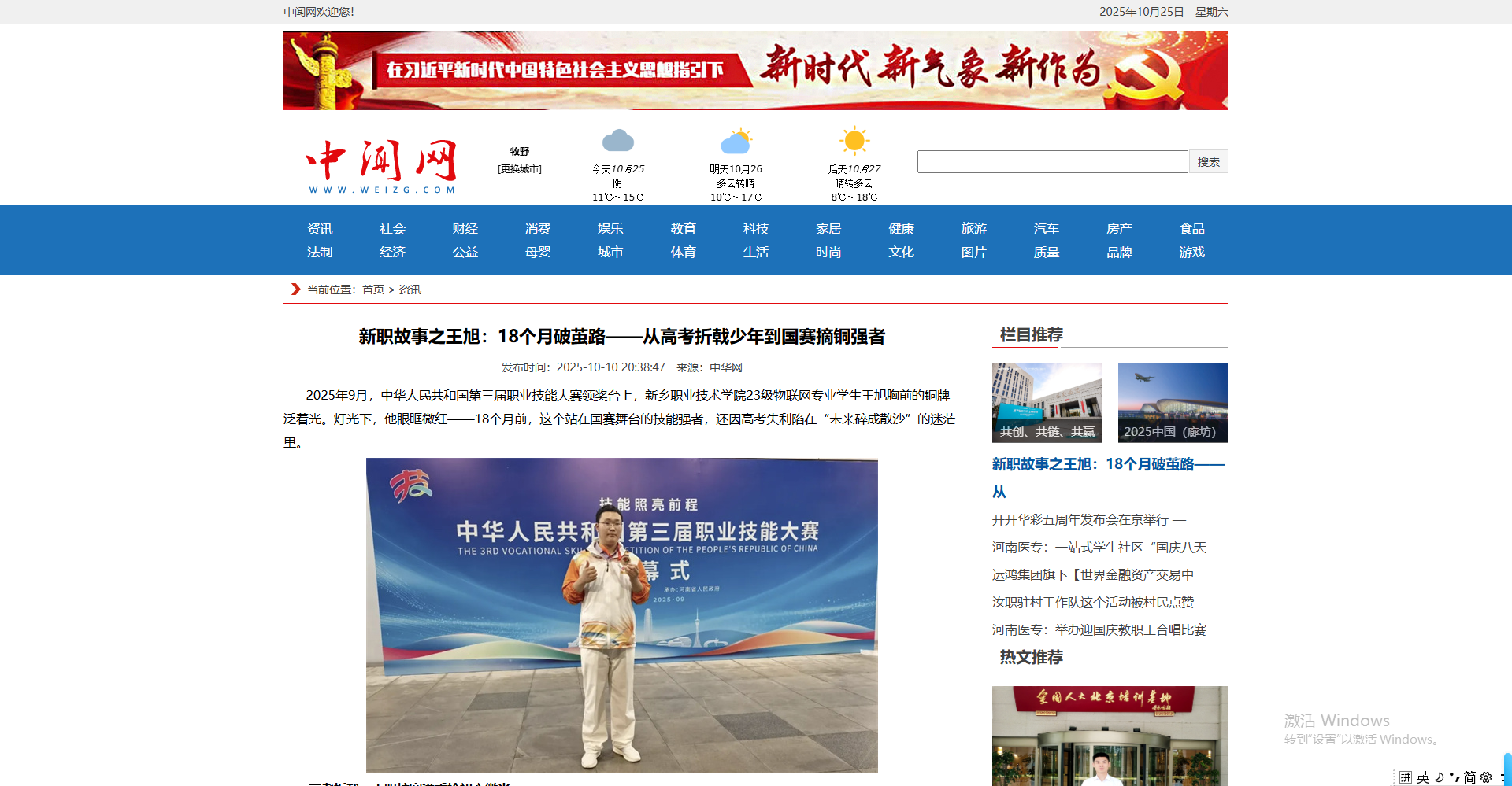 【中闻网】新职故事之王旭:18个月破茧路——从高考折戟少年到国赛摘铜强者