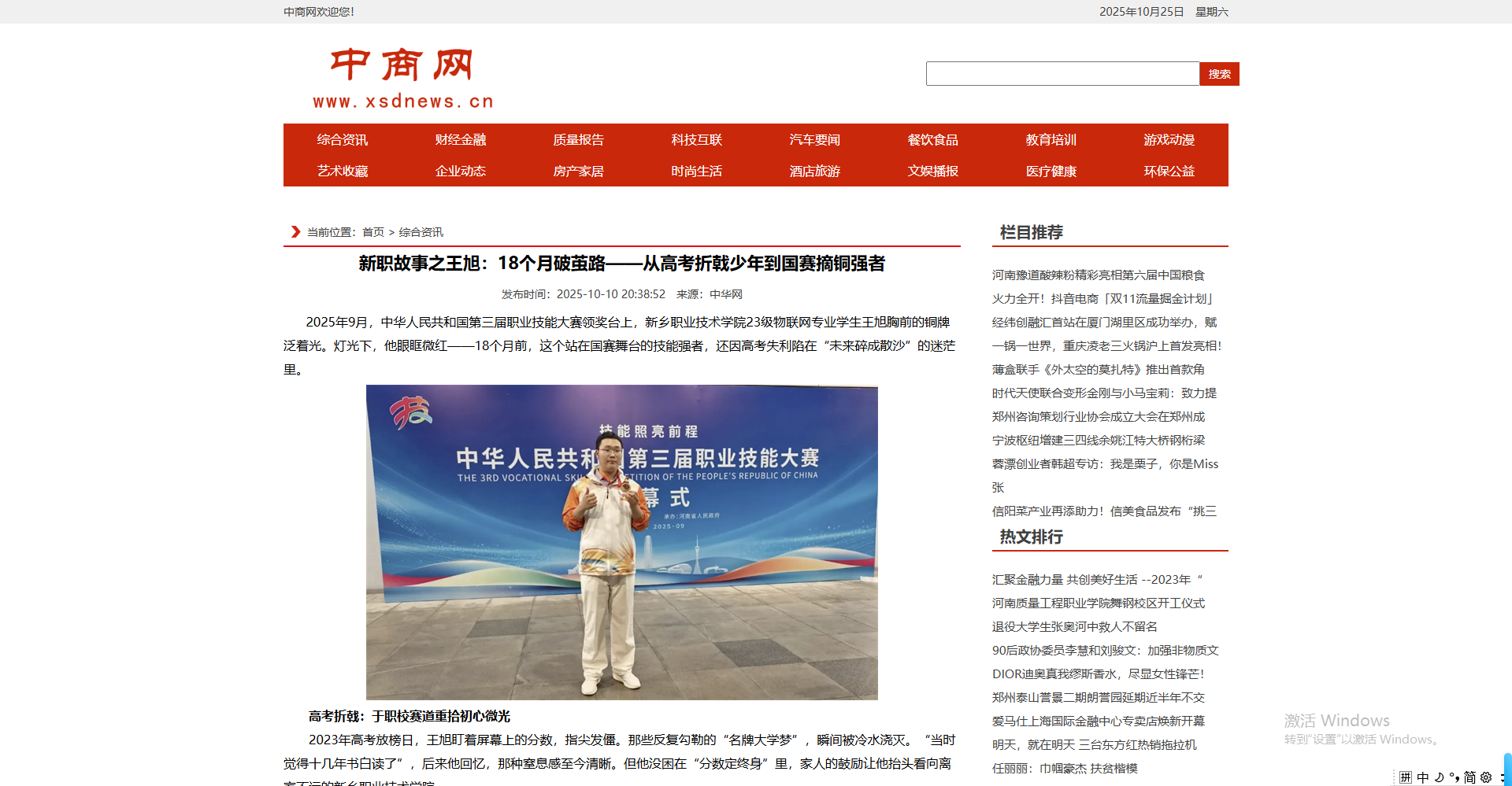 【中商网】新职故事之王旭:18个月破茧路——从高考折戟少年到国赛摘铜强者