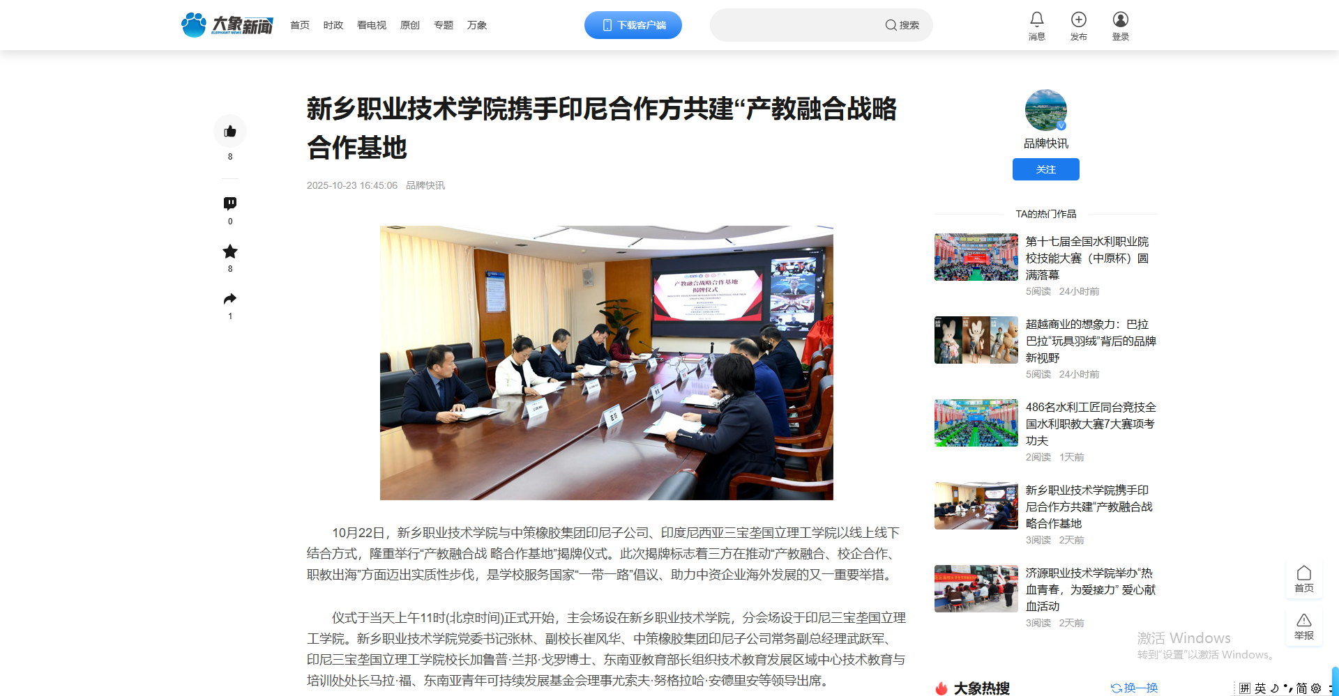 【大象新闻】新乡职业技术学院携手印尼合作方共建“产教融合战略合作基地