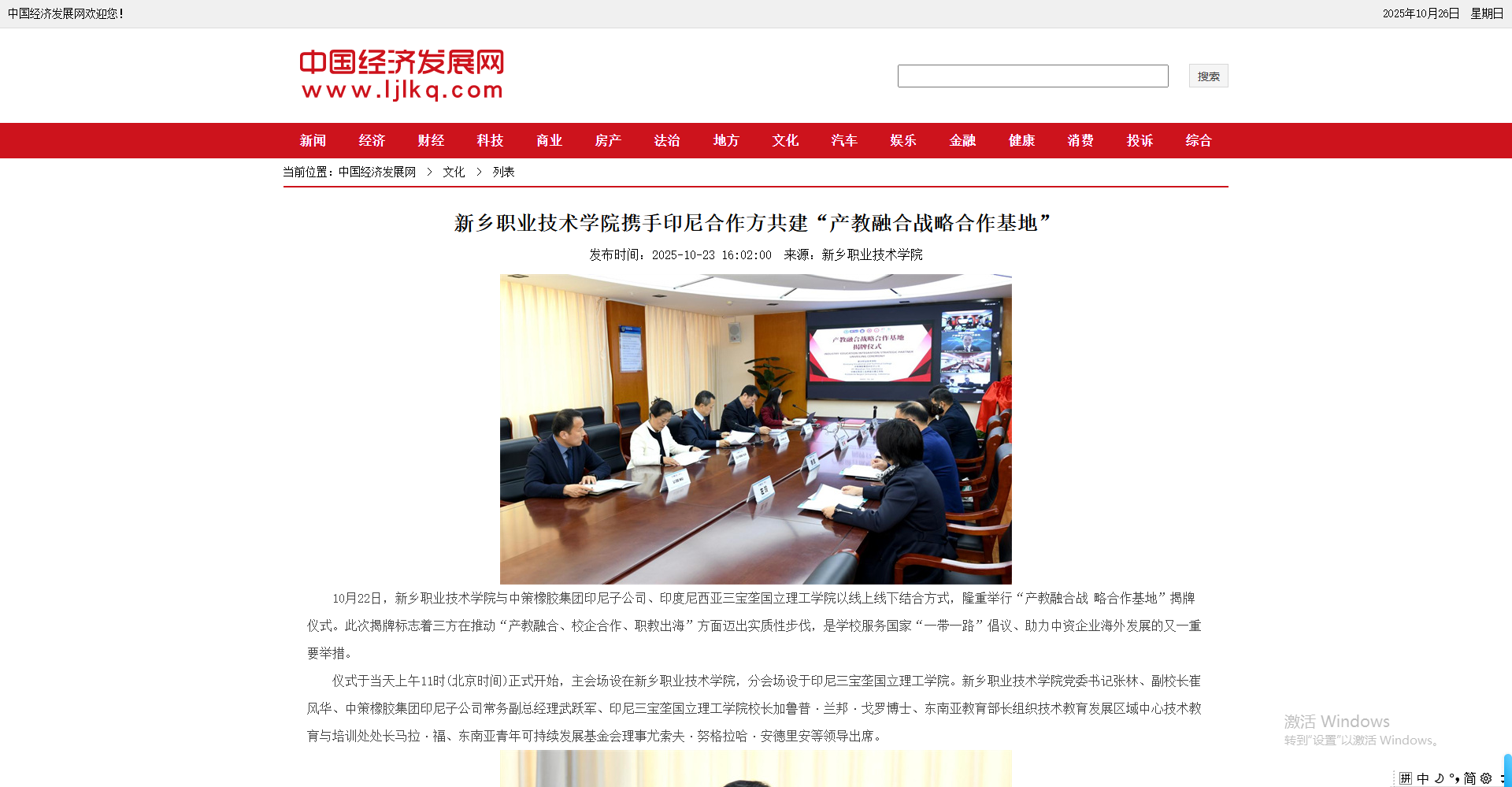 【中国经济发展网】新乡职业技术学院携手印尼合作方共建“产教融合战略合作基地”