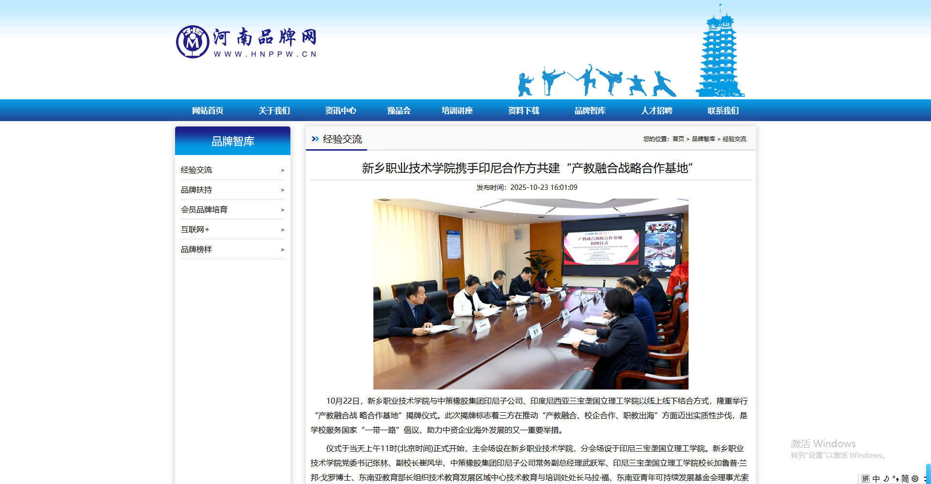 【河南品牌网】新乡职业技术学院携手印尼合作方共建“产教融合战略合作基地”