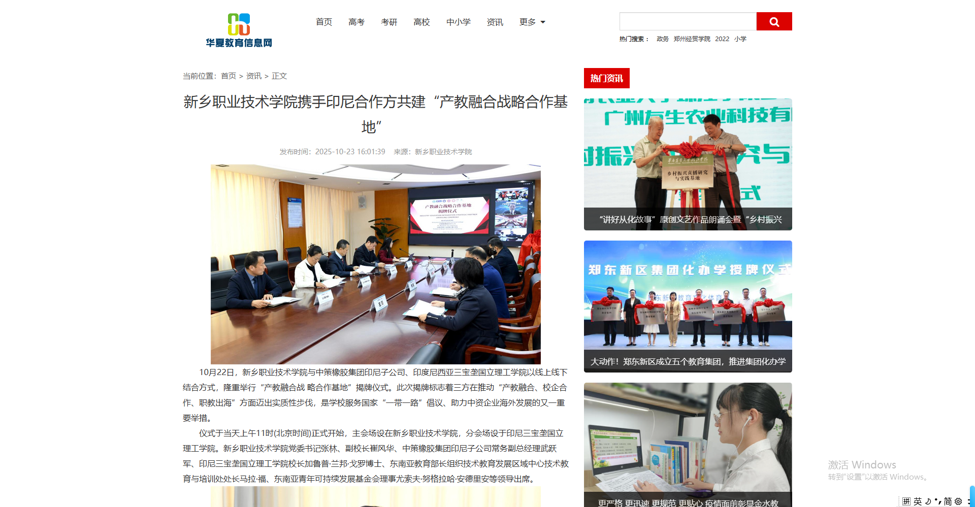 【华夏教育信息网】新乡职业技术学院携手印尼合作方共建“产教融合战略合作基地”