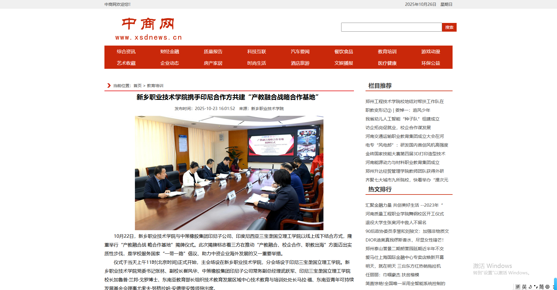 【中商网】新乡职业技术学院携手印尼合作方共建“产教融合战略合作基地”