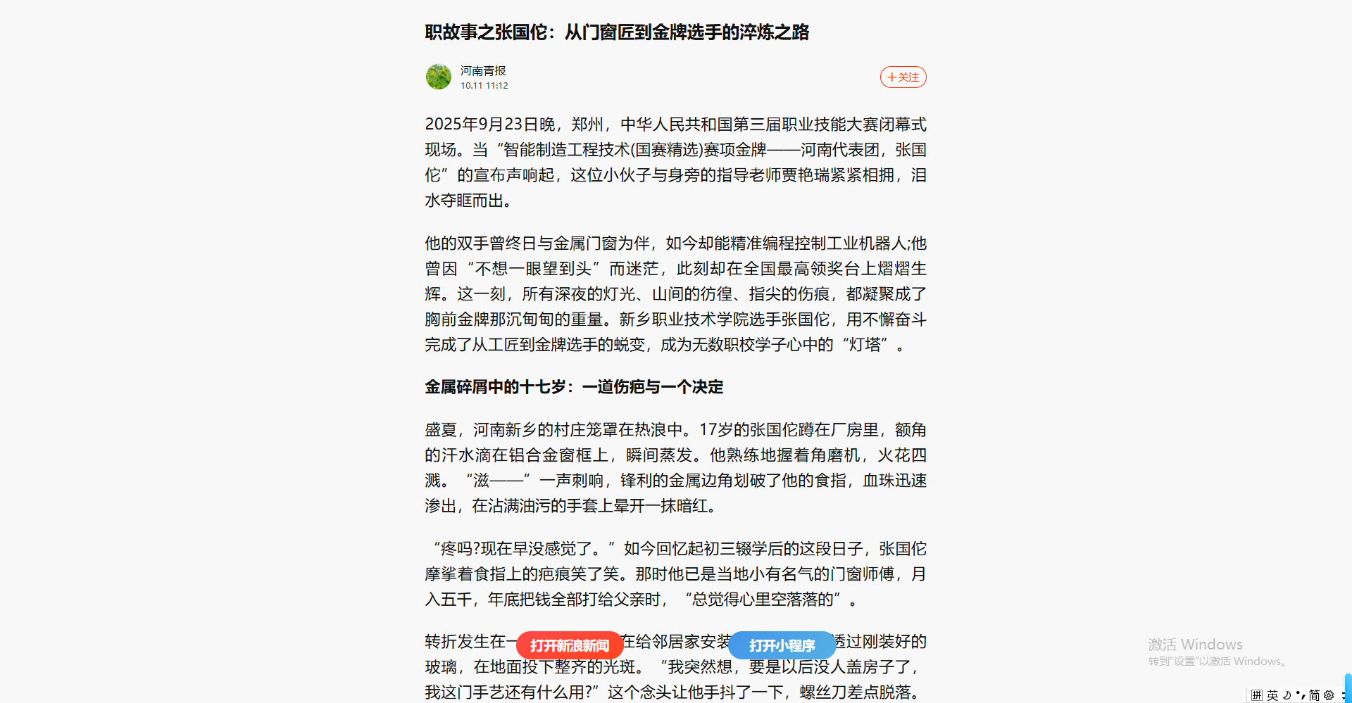 【新浪新闻】新职故事之张国佗:从门窗匠到金牌选手的淬炼之路