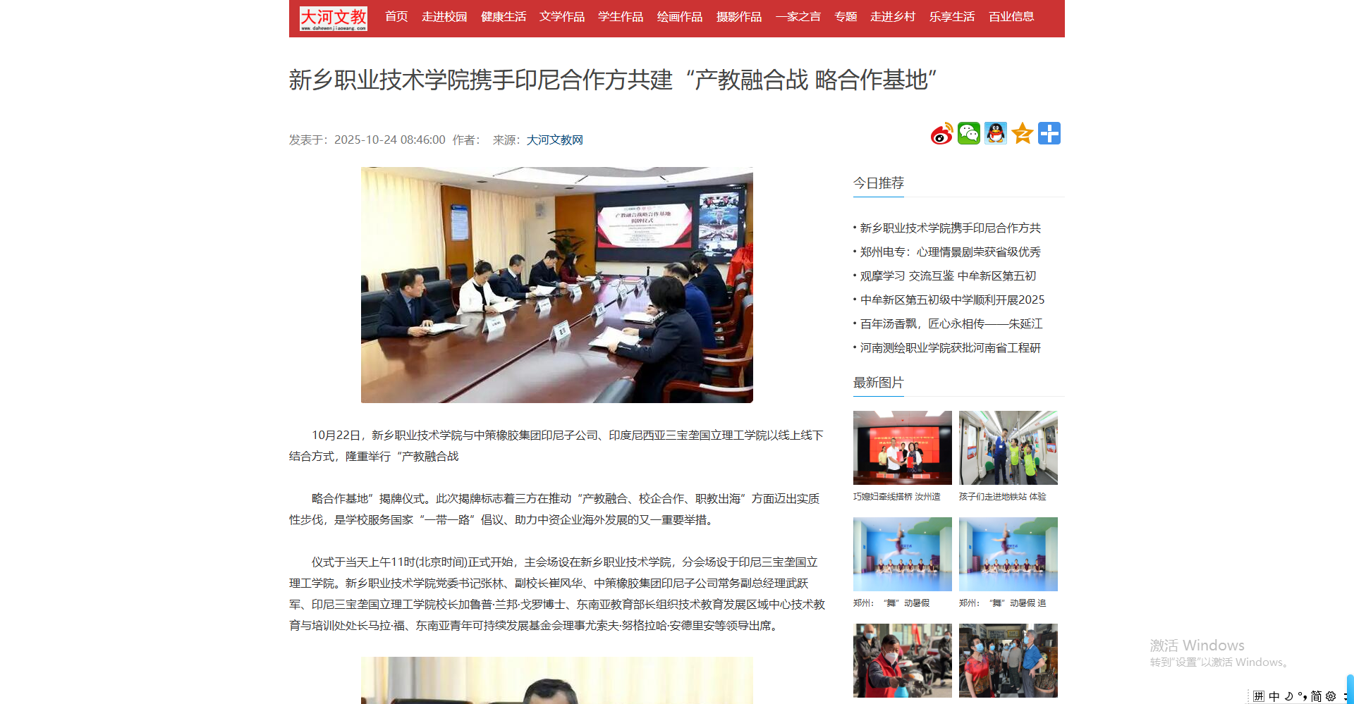 【大河文教网】新乡职业技术学院携手印尼合作方共建“产教融合战 略合作基地”