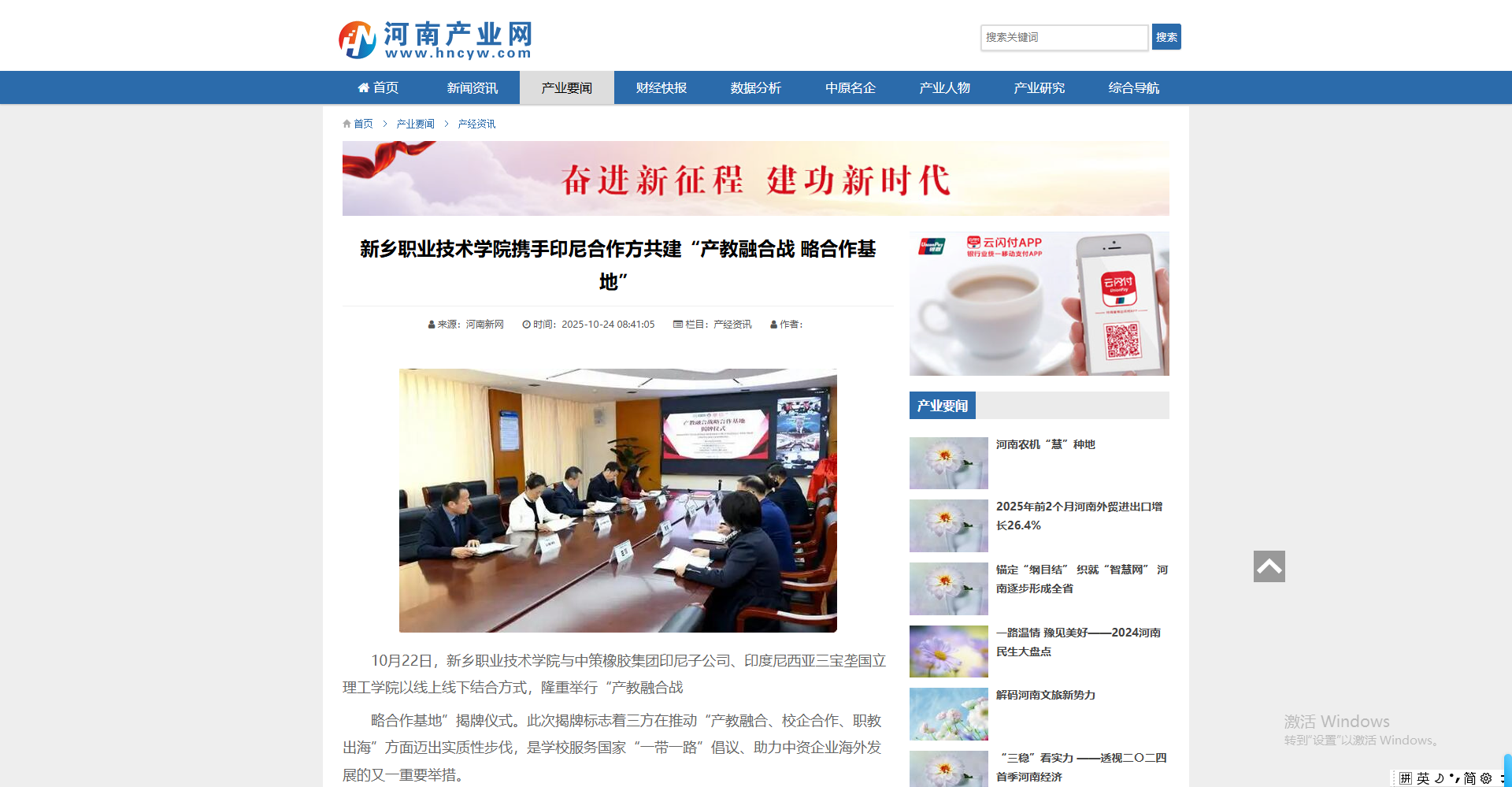 【河南产业网】新乡职业技术学院携手印尼合作方共建“产教融合战 略合作基地”