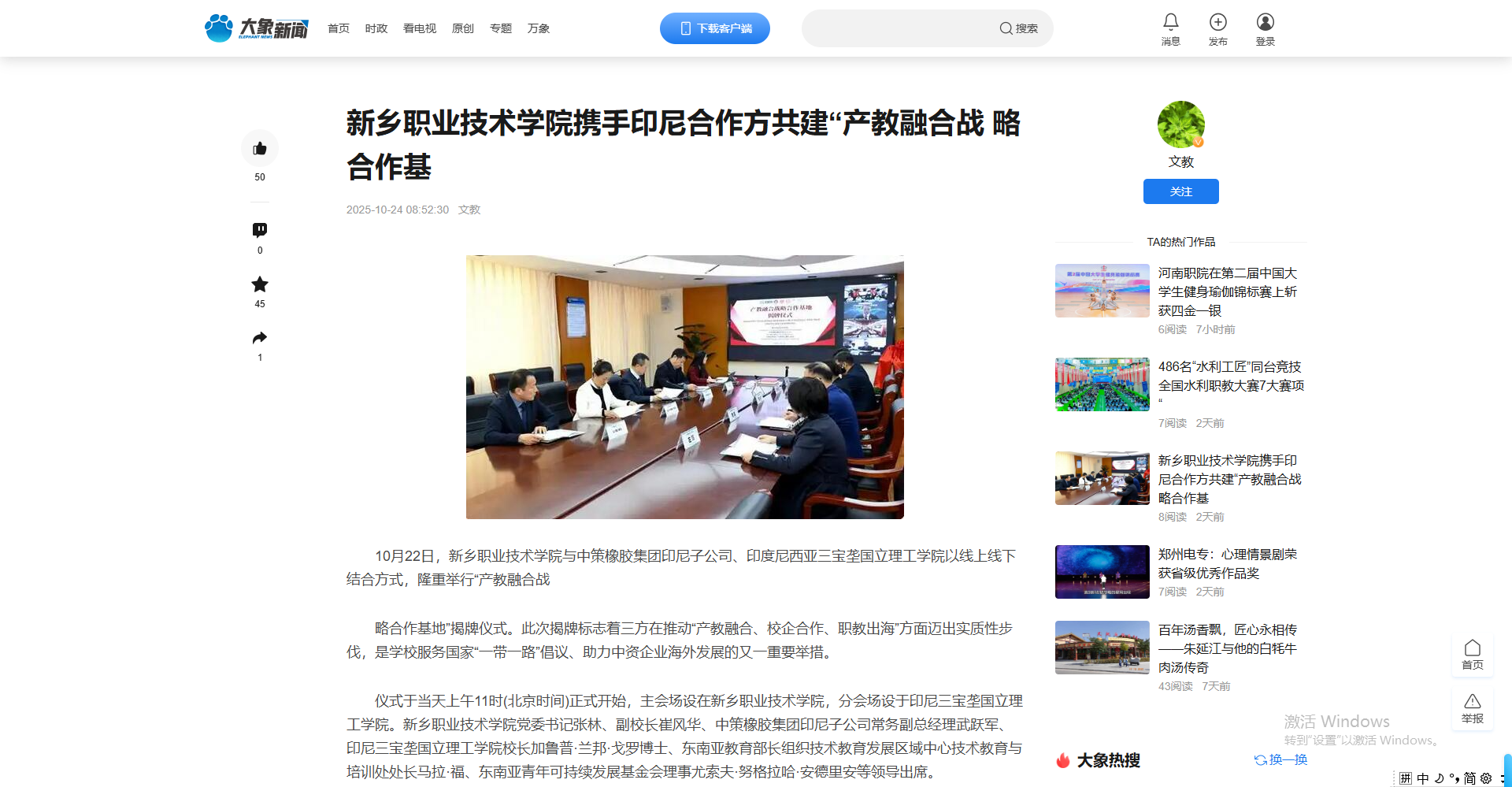 【大象新闻】新乡职业技术学院携手印尼合作方共建“产教融合战 略合作基地”