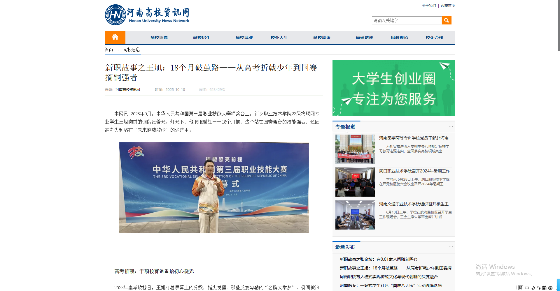 【河南高校资讯网】新职故事之王旭:18个月破茧路——从高考折戟少年到国赛摘铜强者