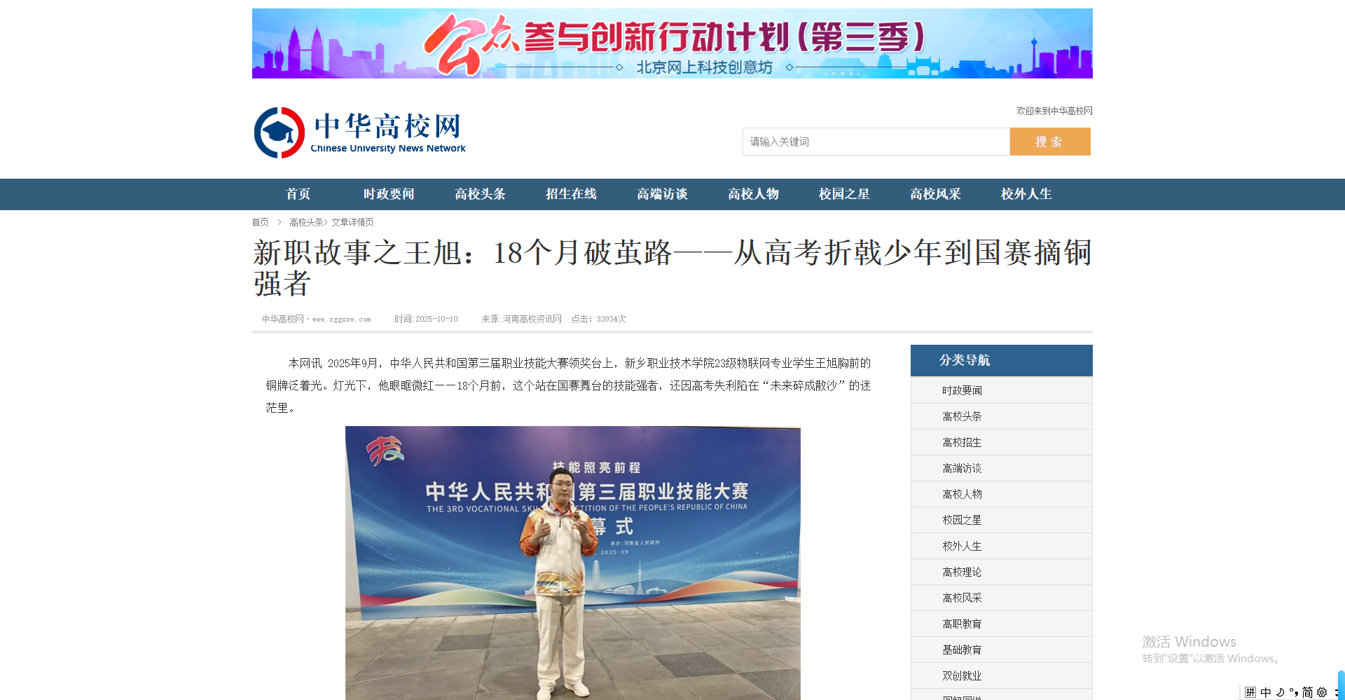 【中华高校网】新职故事之王旭:18个月破茧路——从高考折戟少年到国赛摘铜强者