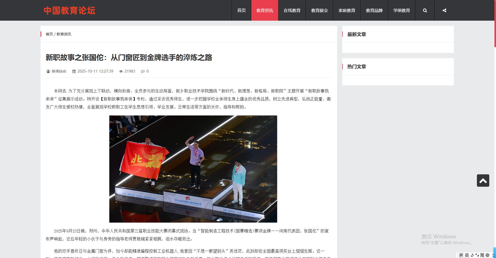 【中国教育论坛】新职故事之张国佗:从门窗匠到金牌选手的淬炼之路