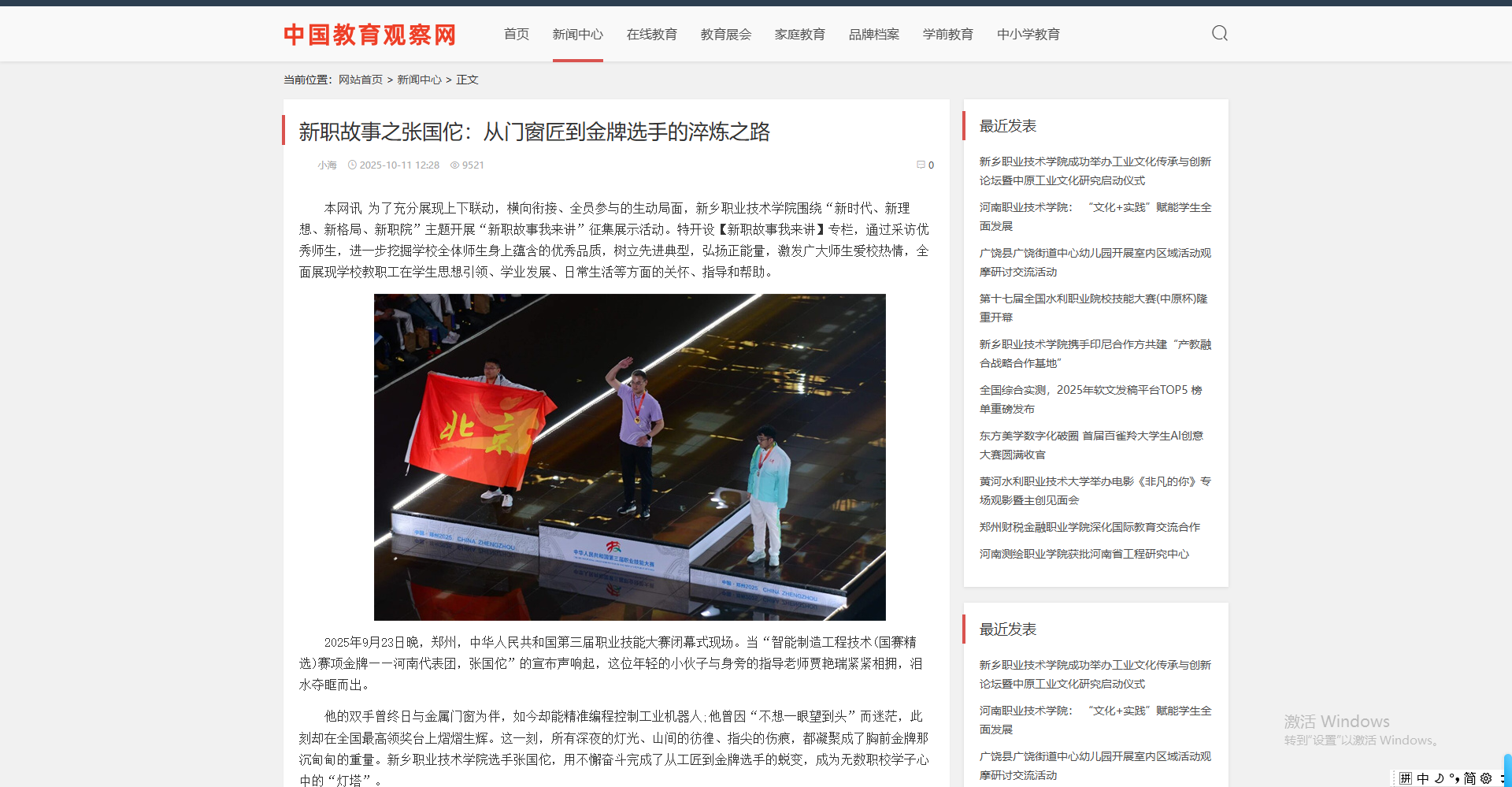 【中国教育观察网】新职故事之张国佗:从门窗匠到金牌选手的淬炼之路