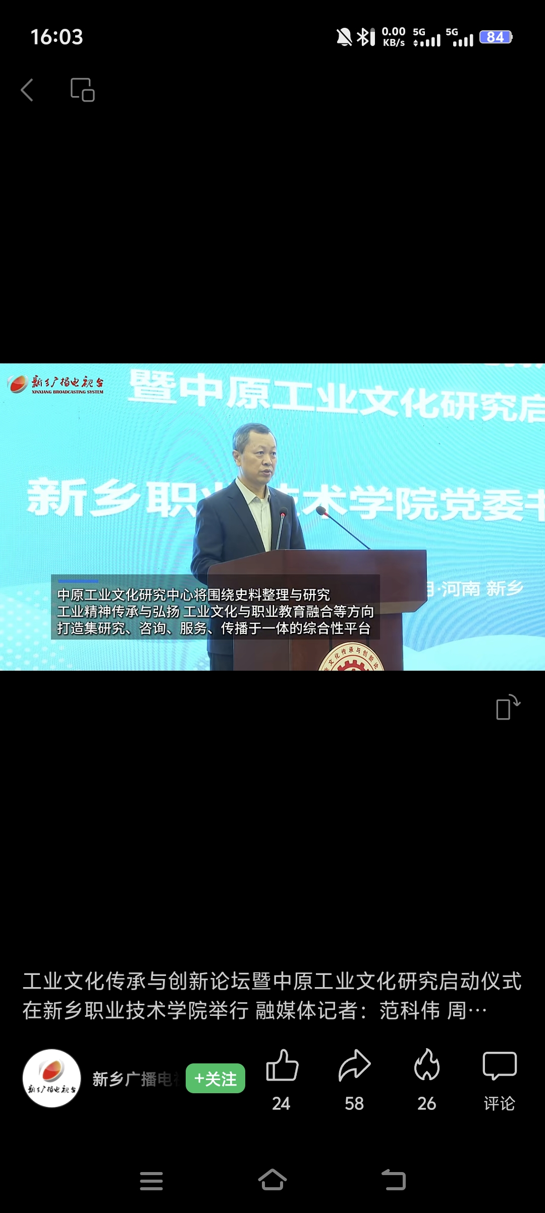 【新乡广播电视台】工业文化传承与创新论坛暨中原工业文化研究启动仪式在新乡职业技术学院举行