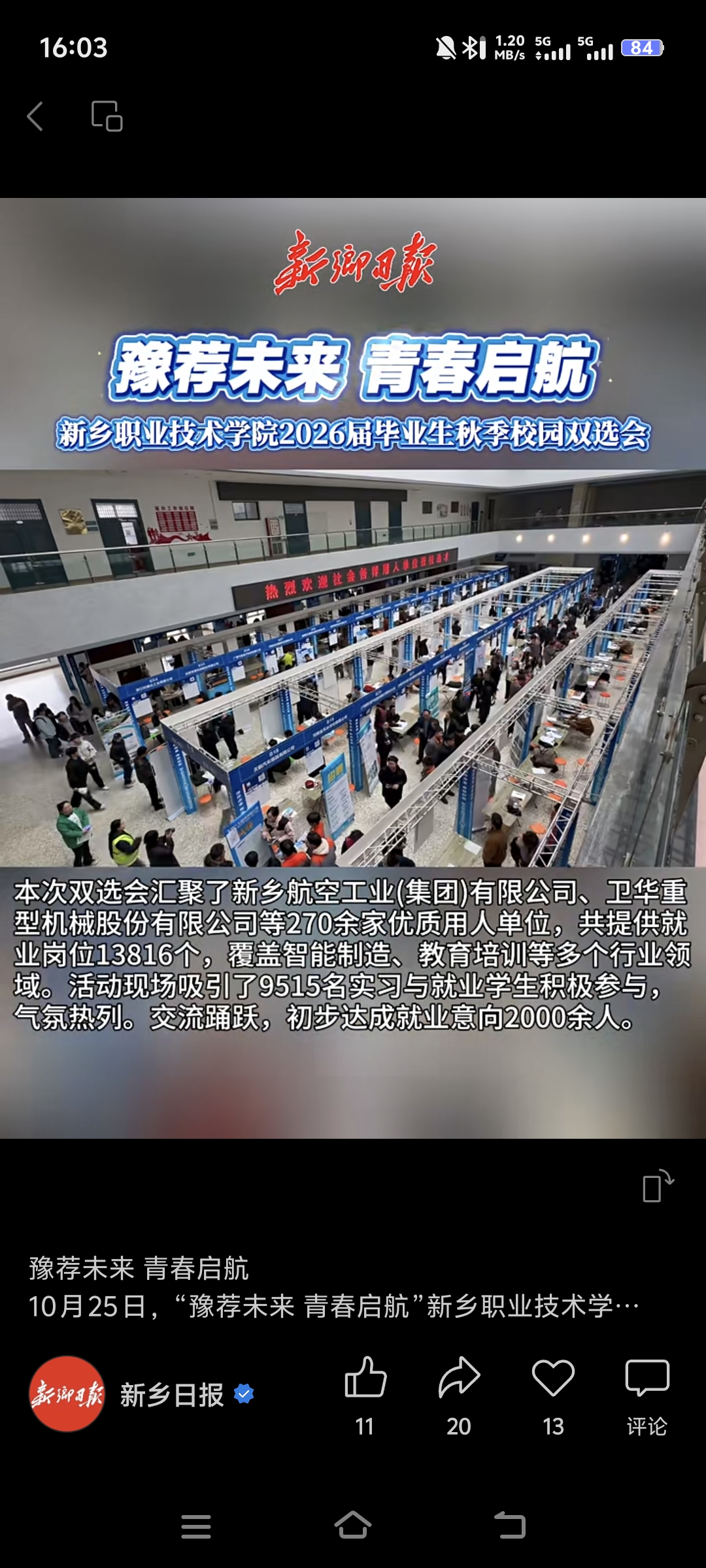 【新乡日报】豫荐未来 青春启航——新乡职业技术学院2026届毕业生秋季校园双选会