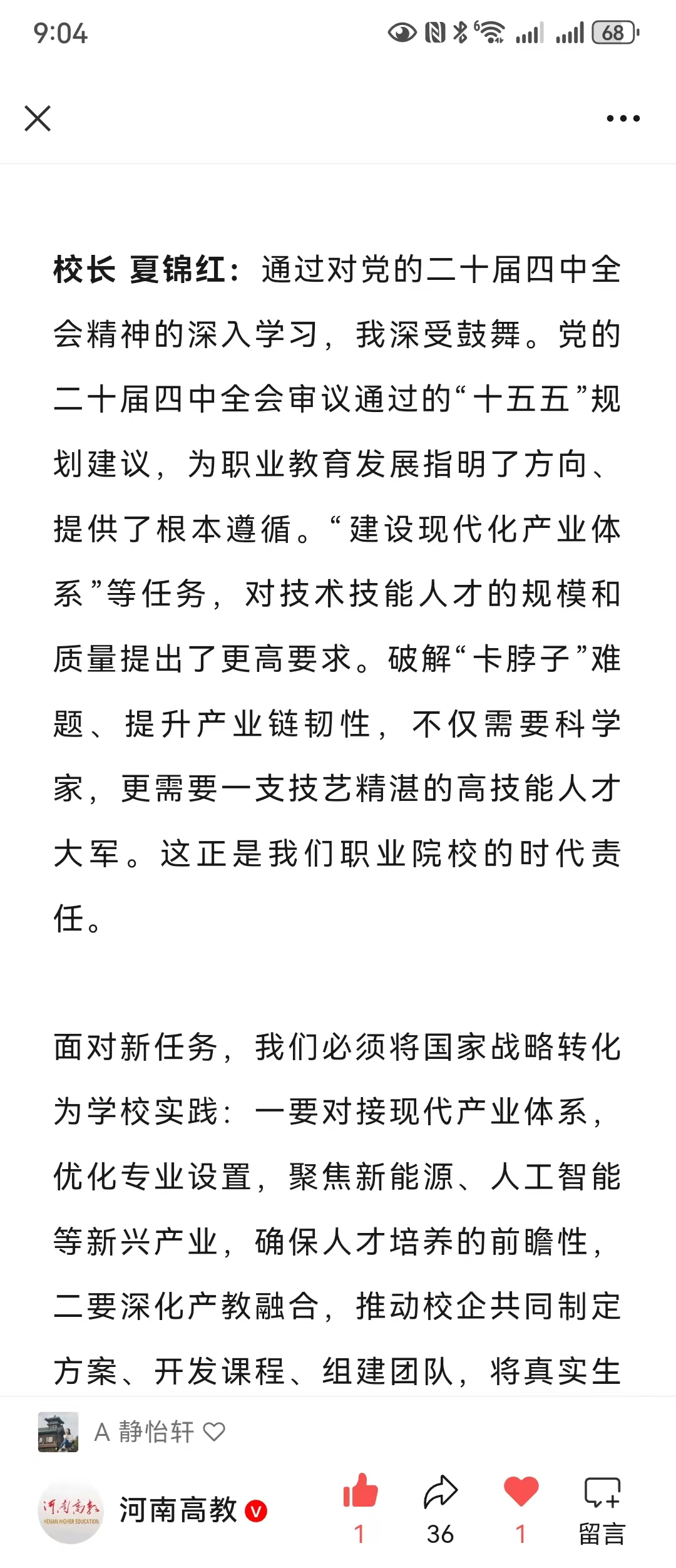 【河南高教】实干笃行!河南高职院校书记校长热议党的二十届四中全会精神(三)