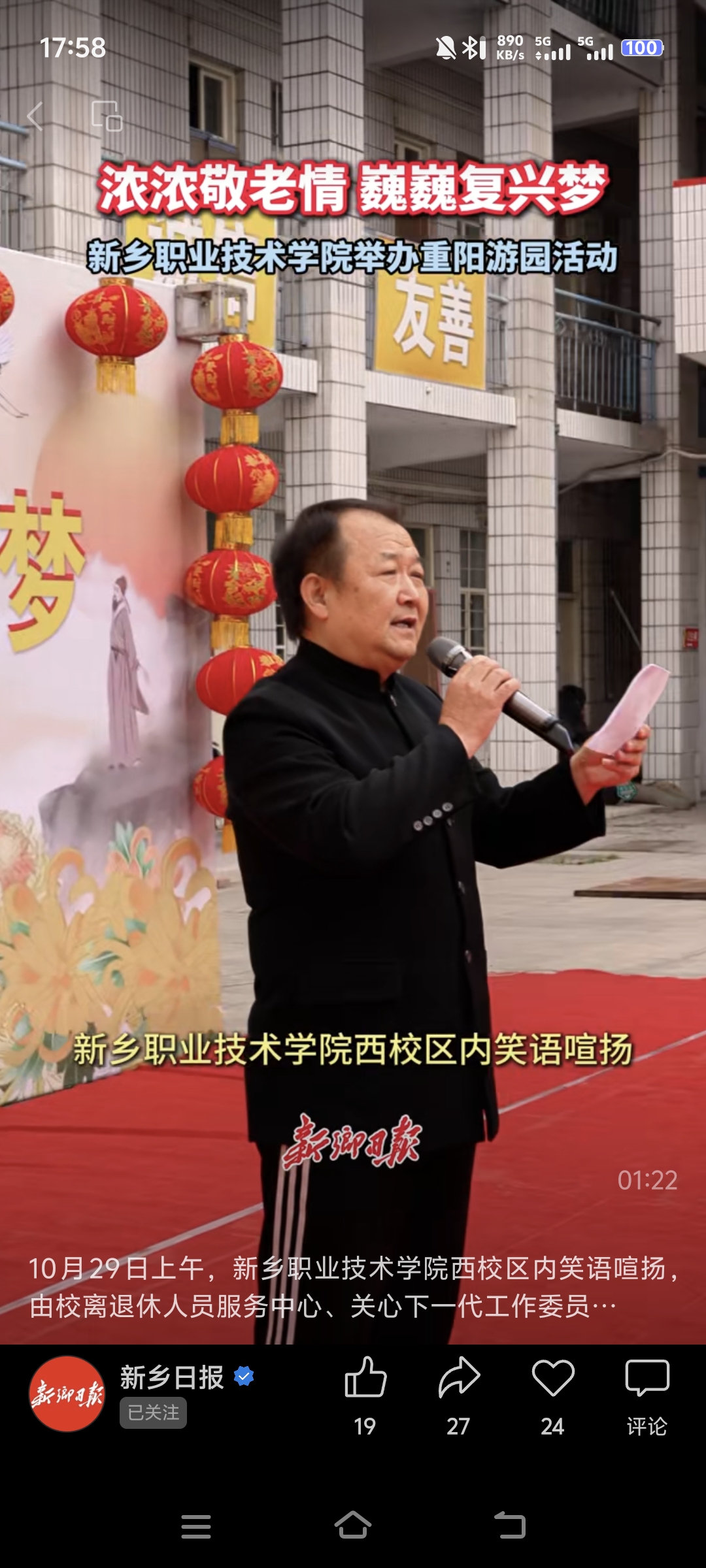 【新乡日报】浓浓敬老情 巍巍复兴梦——新乡职业技术学院举办重阳游园活动