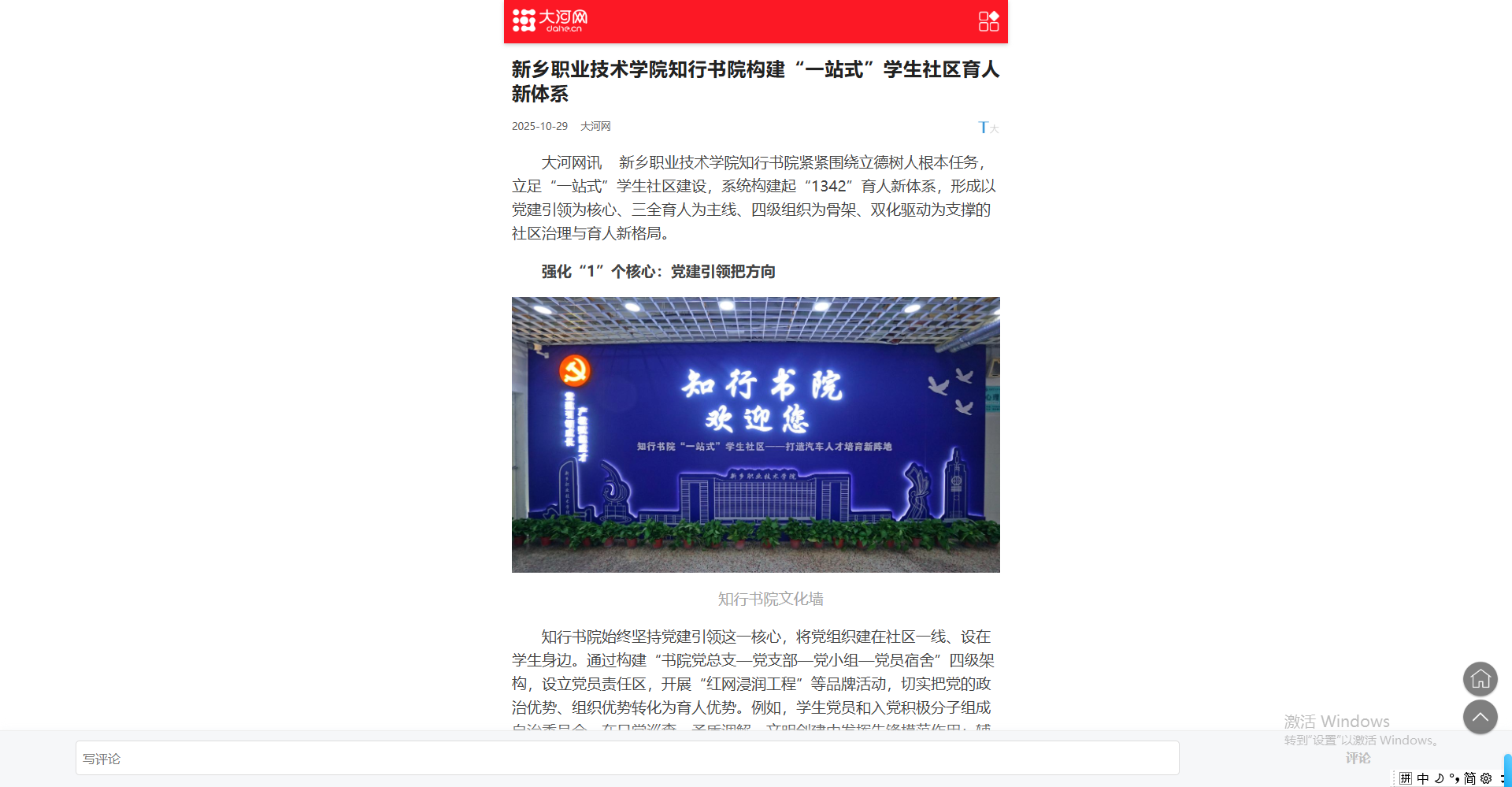 【大河网】新乡职业技术学院知行书院构建“一站式”学生社区育人新体系