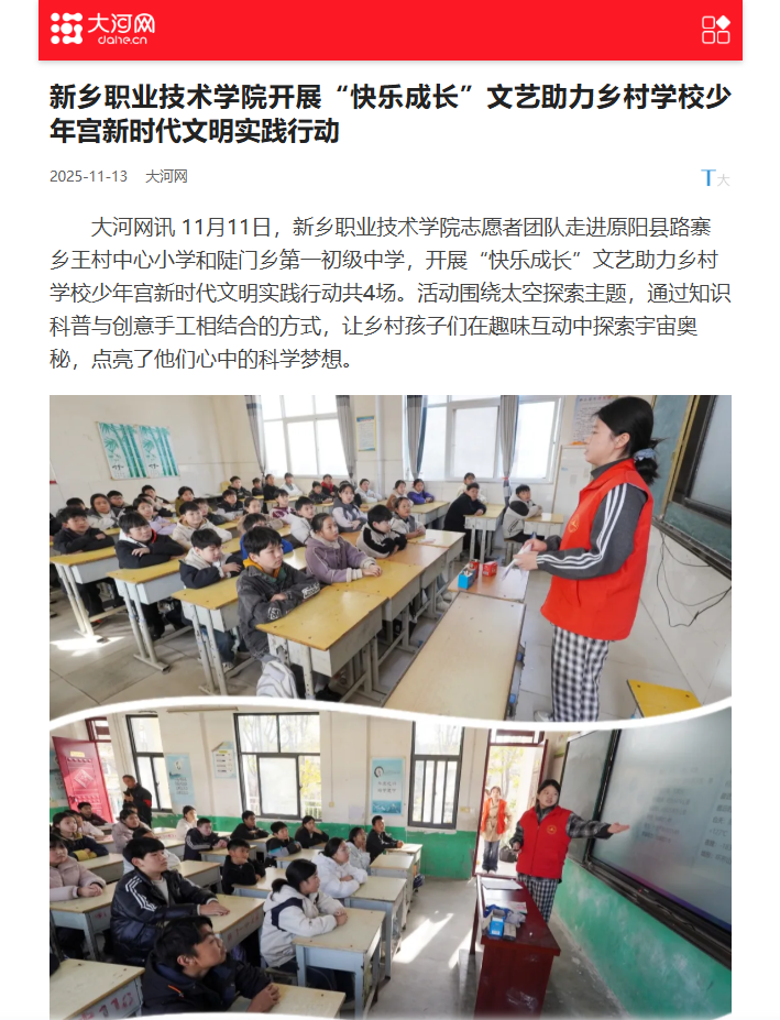 【大河网】新乡职业技术学院开展“快乐成长”文艺助力乡村学校少年宫新时代文明实践行动
