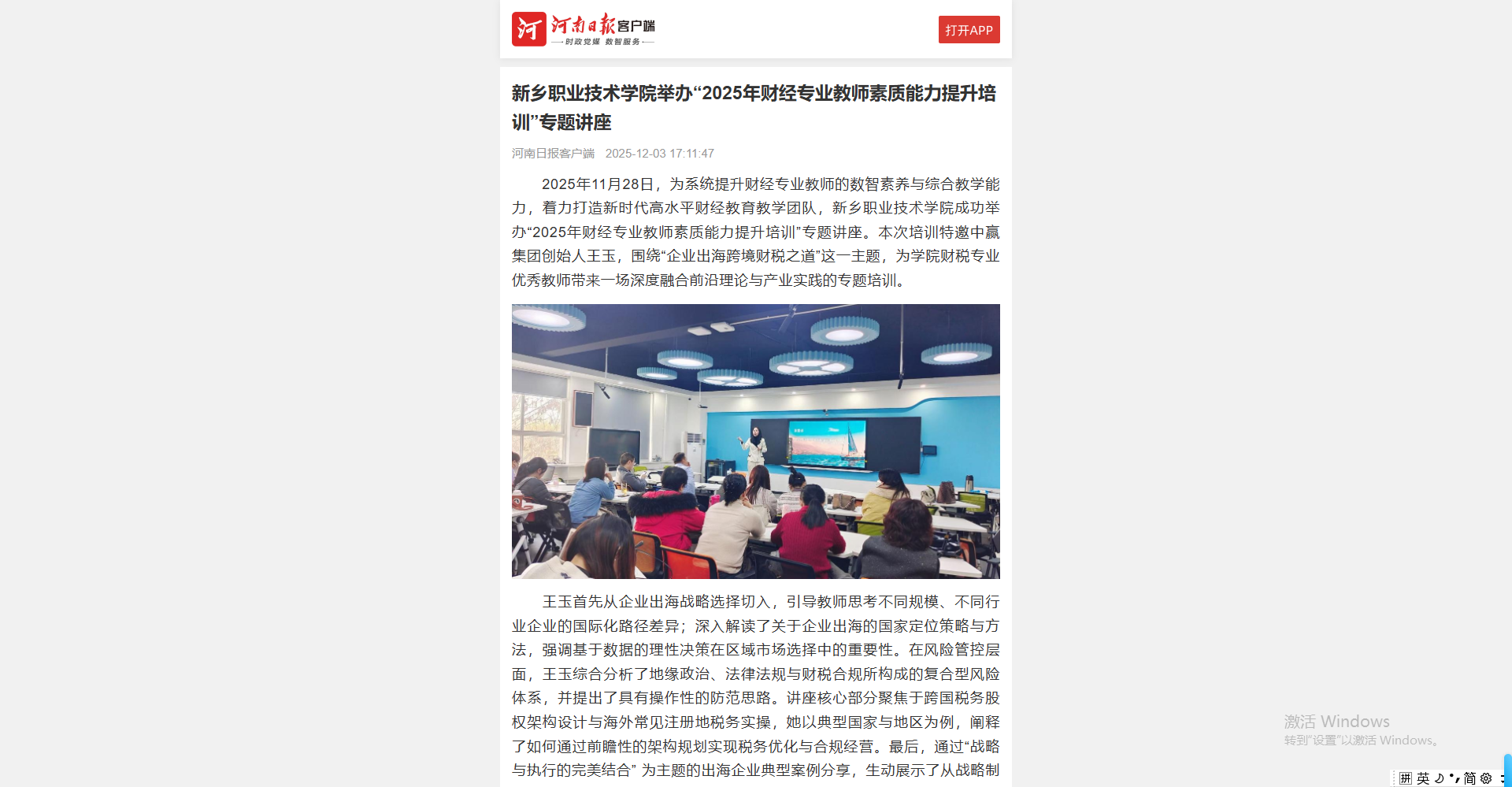 【河南日报】新乡职业技术学院举办“2025年财经专业教师素质能力提升培训”专题讲座