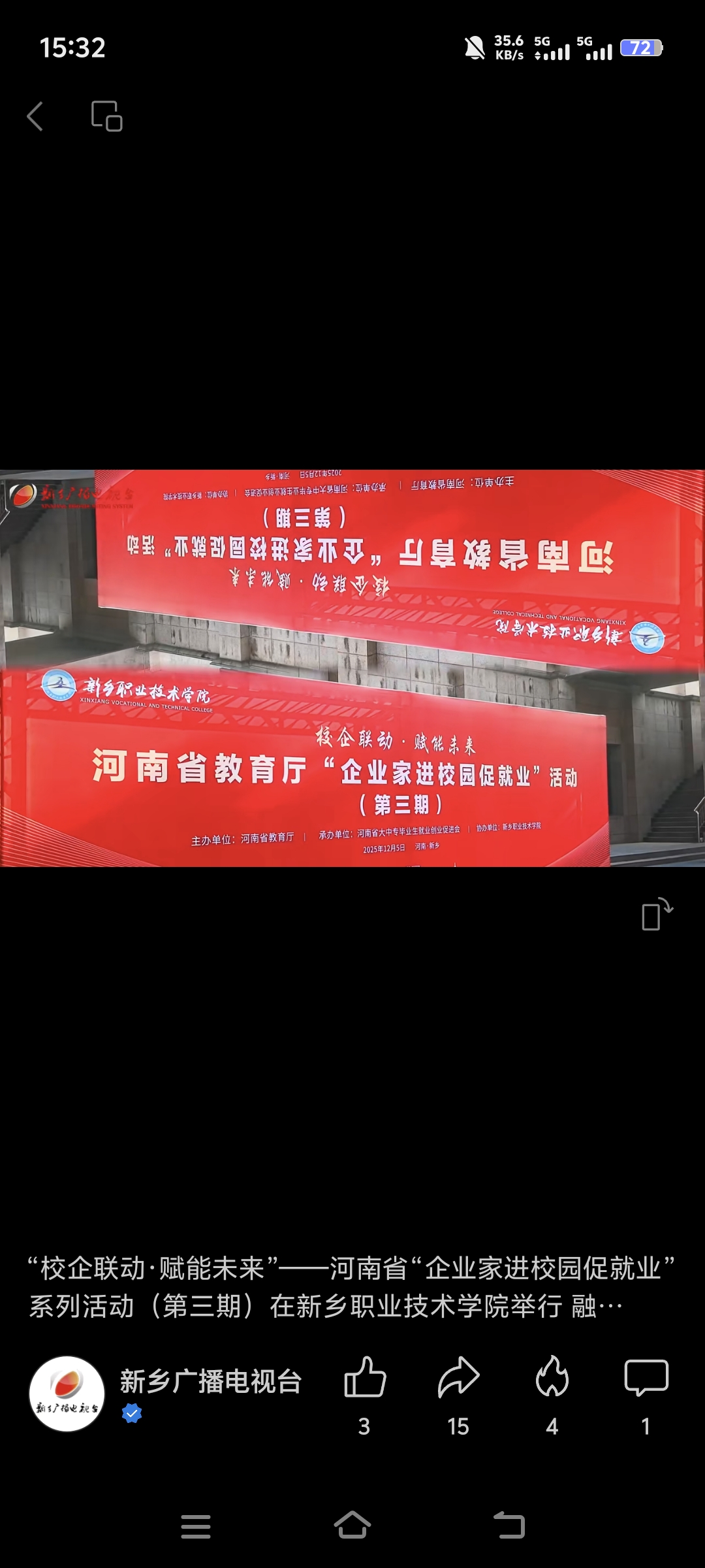 【新乡广播电视台】校企联动·赋能未来”——河南省“企业家进校园促就业”系列活动(第三期)在新乡职业技术学院举行