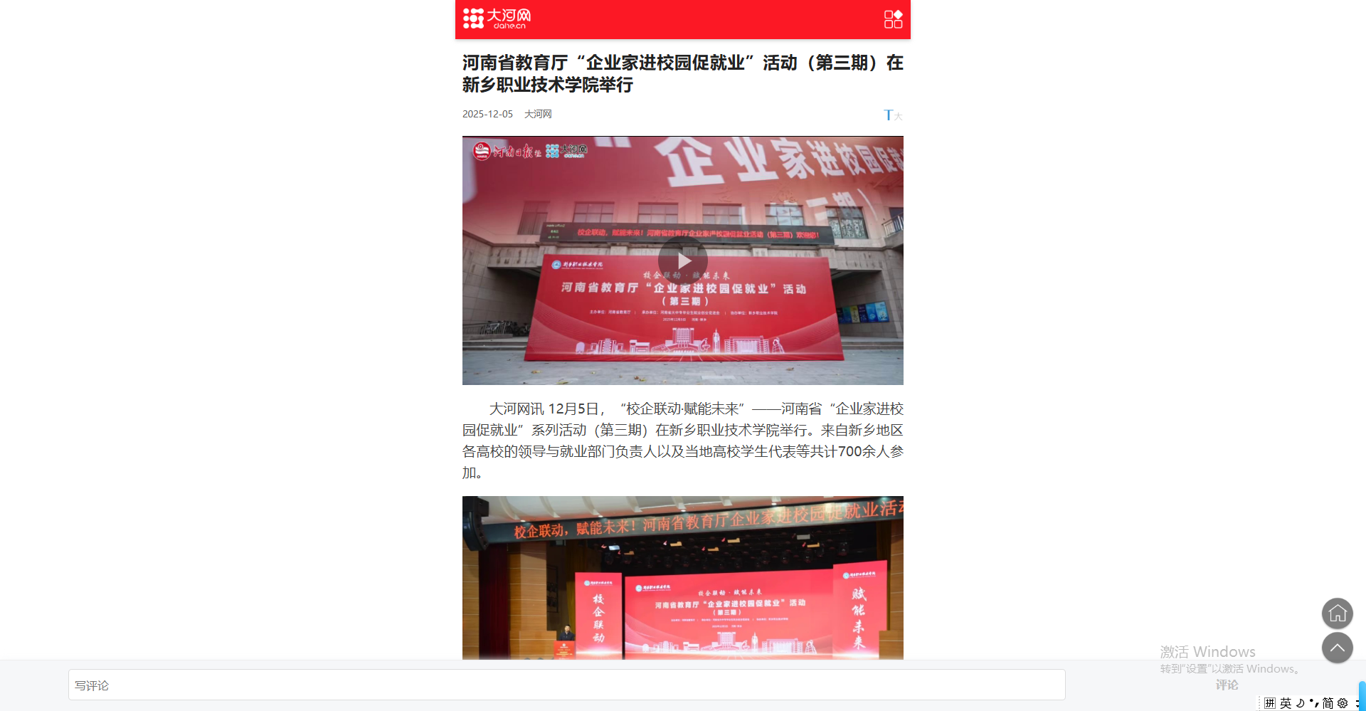 【大河网】河南省教育厅“企业家进校园促就业”活动(第三期)在新乡职业技术学院举行