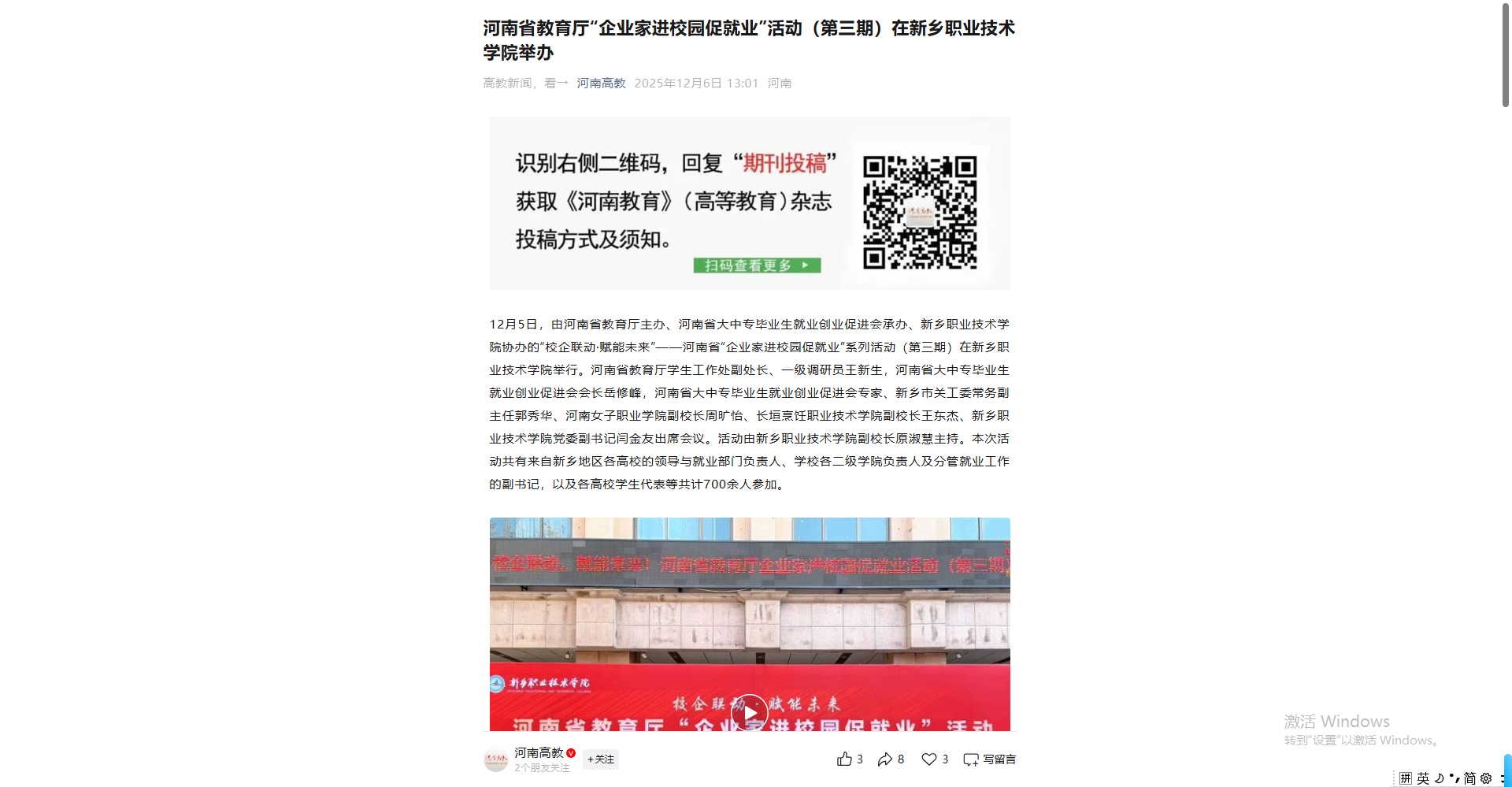 【河南高教】河南省教育厅“企业家进校园促就业”活动(第三期)在新乡职业技术学院举办