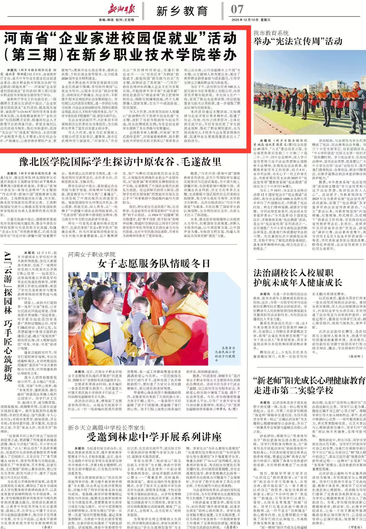 【新乡日报】河南省“企业家进校园促就业”活动(第三期)在新乡职业技术学院举办