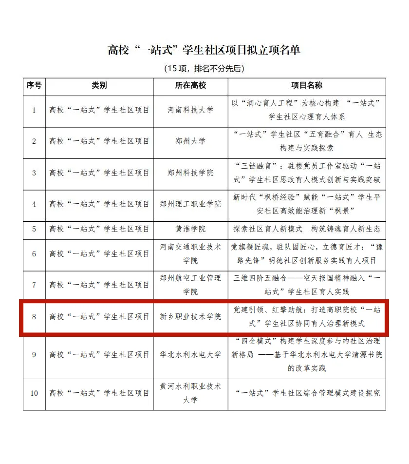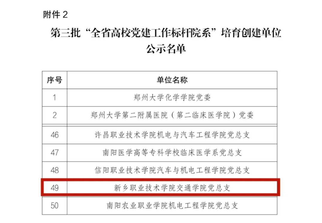 大河网讯 近日,新乡职业技术学院交通学院党总支喜讯频传:成功入选河南省第三批“全省高校党建工作标杆院系”培育创建单位,其“党建引领、红擎助航:打造高职院校‘一站式’学生社区协同育人治理新模式”项目获批2025年河南省高校思想政治工作质量提升综合改革与精品建设项目。两项省级荣誉的落地,标志着学院在党建引领育人、创新社区治理模式方面取得显著成效,为高职院校破解“党建与人才培养深度融合”难题提供了可复制的“交院方案”。
