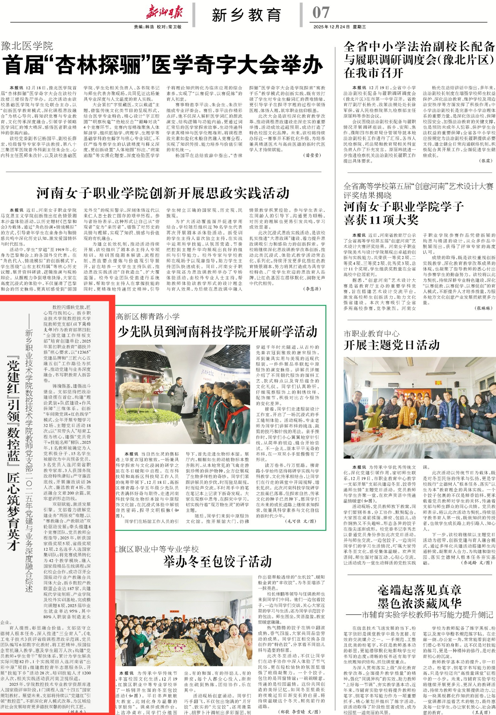 【新乡日报】党建红』引领一数控蓝」匠心筑梦育英才——新乡职业技术学院数控技术学院教师党支部二○二五年党建与业务深度融合综述