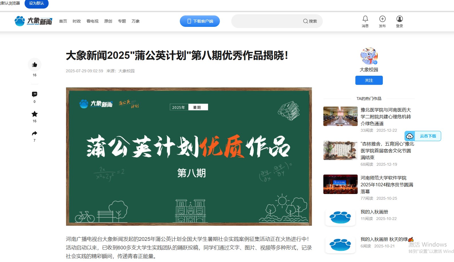 【大象新闻】“蒲公英计划”第八期优秀作品揭晓