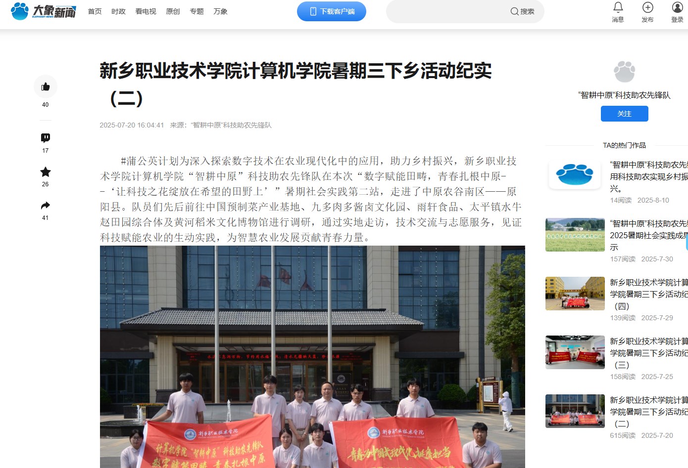 【大象新闻】新乡职业技术学院计算机学院暑期“三下乡”社会实践活动纪实(二)