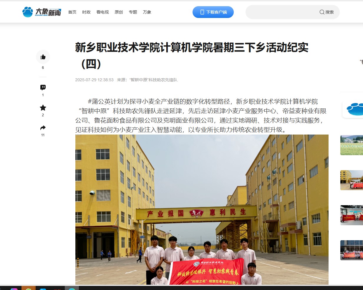 【大象新闻】新乡职业技术学院计算机学院暑期“三下乡”社会实践活动纪实(四)