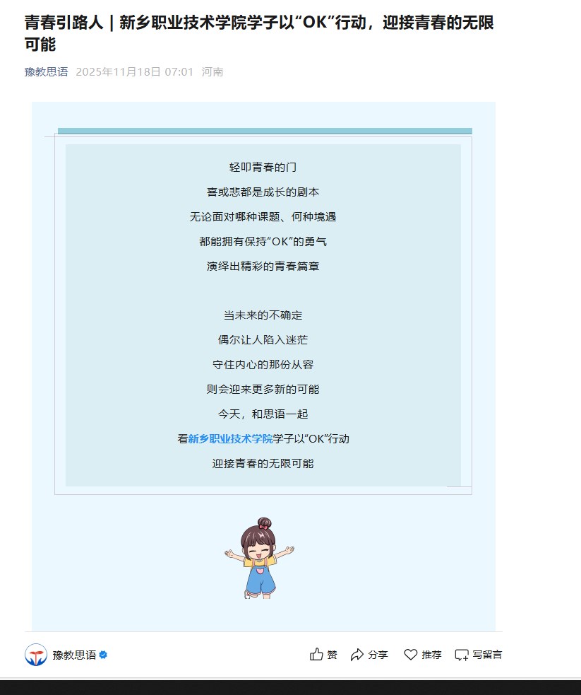 【豫教思语】青春引路人 | 新乡职业技术学院学子以“OK”行动,迎接青春的无限可能