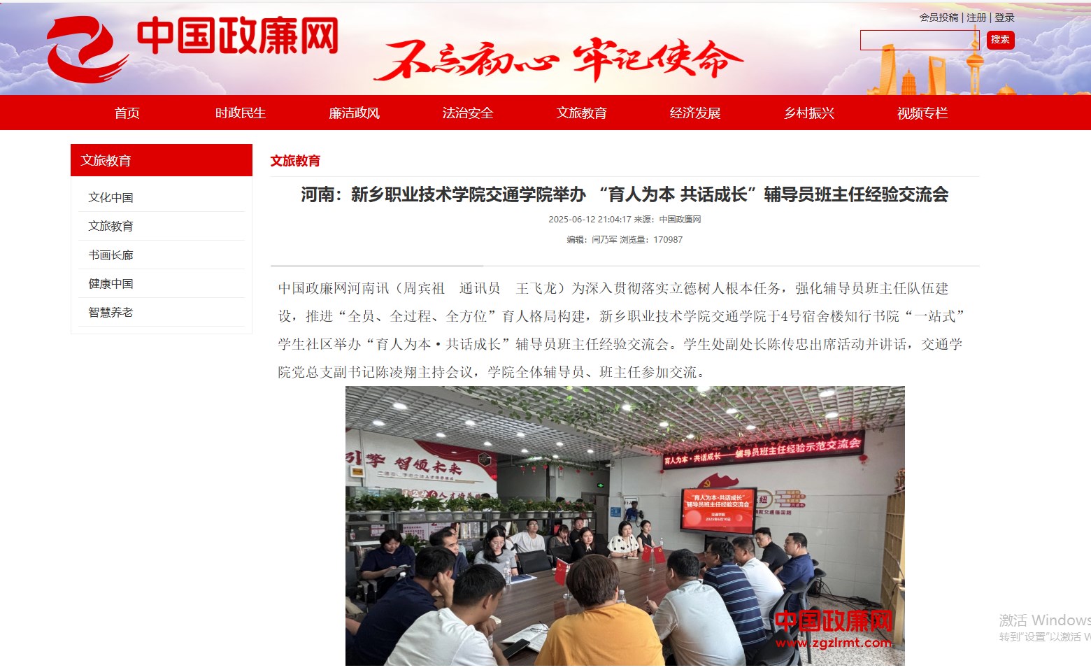 【中国政廉网】河南:新乡职业技术学院交通学院举办 “育人为本 共话成长”辅导员班主任经验交流会