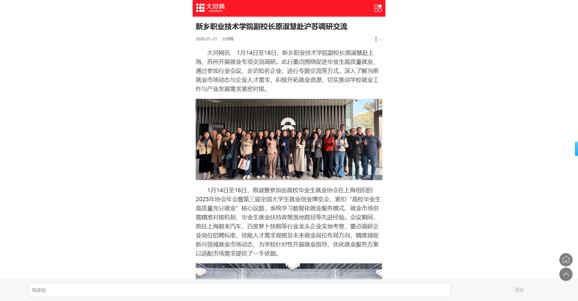 【大河网】新乡职业技术学院副校长原淑慧赴沪苏调研交流