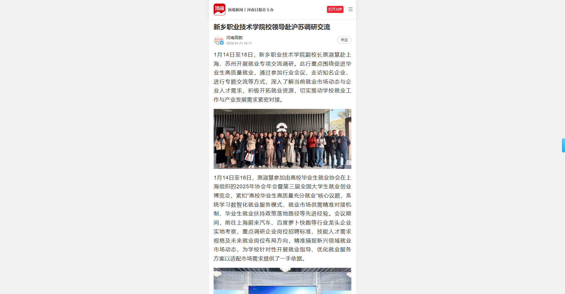 【顶端新闻】新乡职业技术学院校领导赴沪苏调研交流