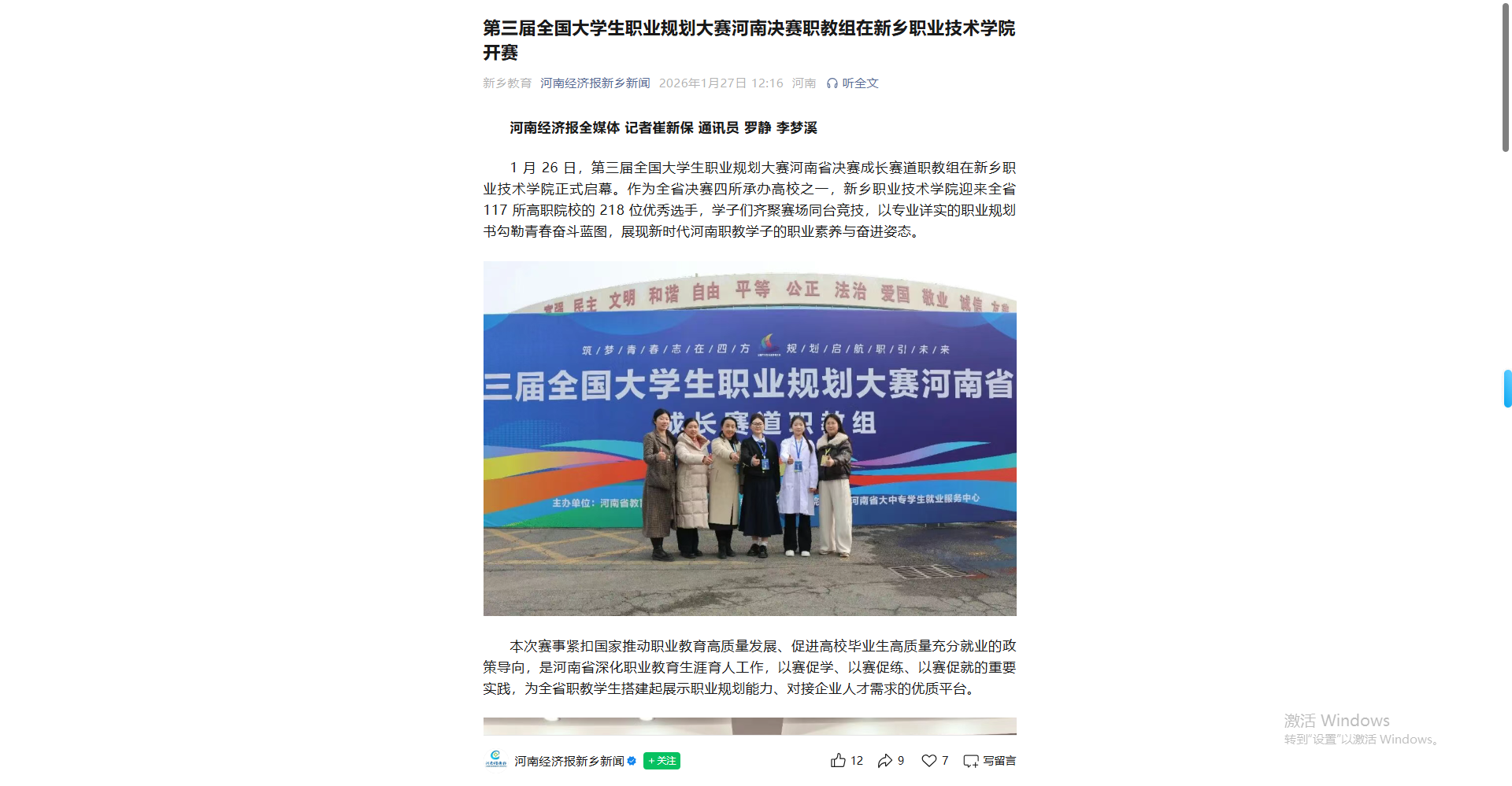 【河南经济报】第三届全国大学生职业规划大赛河南决赛职教组在新乡职业技术学院开赛