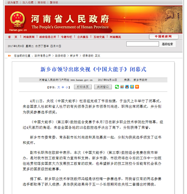 河南省人民政府门户网站 新乡市领导出席央视----《中国大能手》闭幕式2017年4月14日