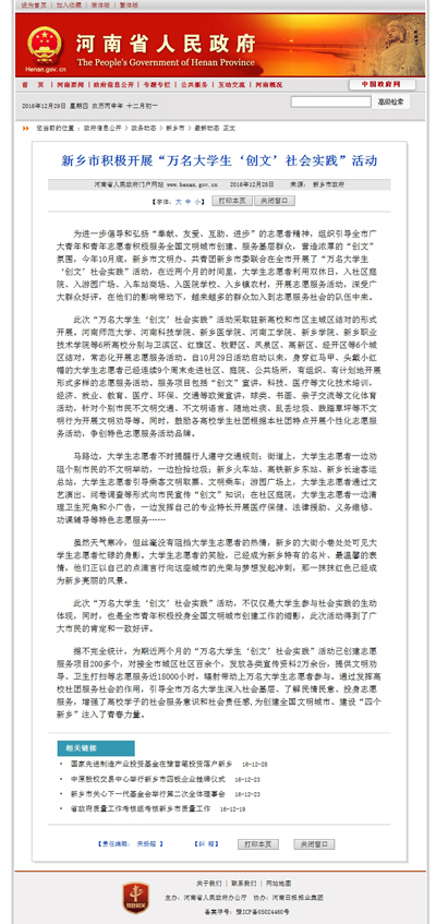 3河南省人民政府门户网站 新乡市积极开展“万名大学生‘创文’社会实践”活动