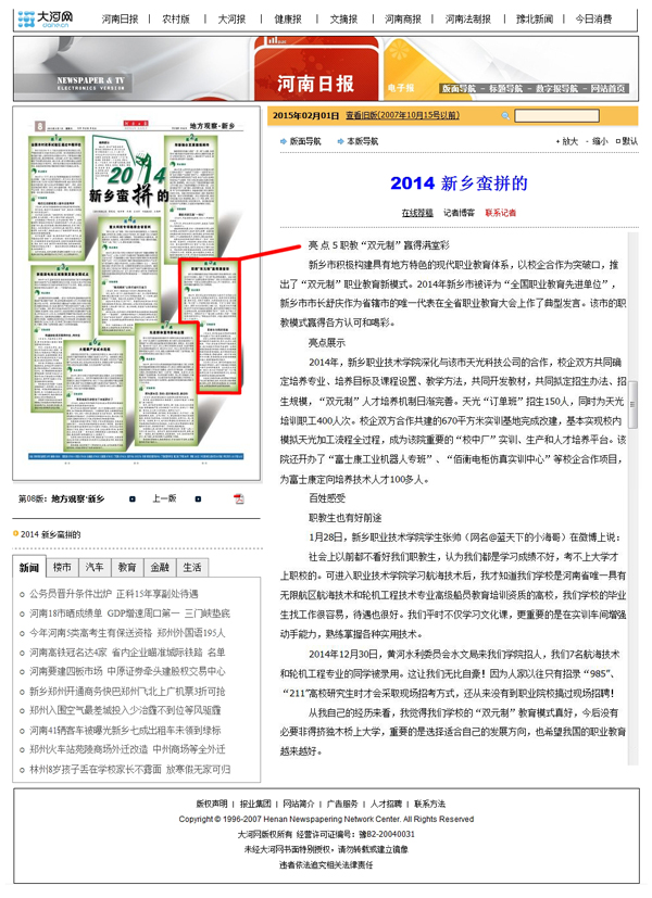 河南日报相关链接:http://newpaper.dahe.cn/hnrb/html/2015-02/01/content_1219688.htm?div=-1
