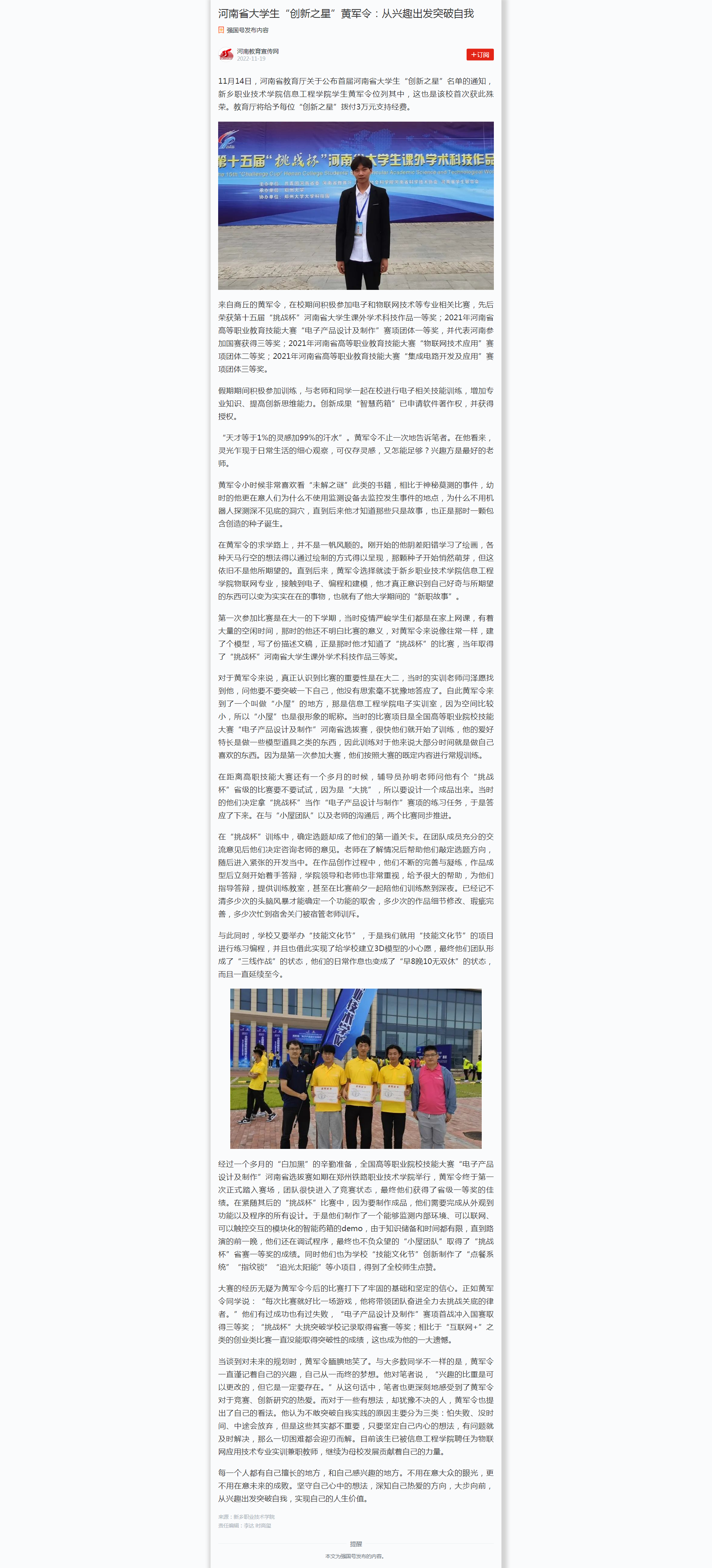 河南省大学生“创新之星”黄军令:从兴趣出发突破自我---学习强国