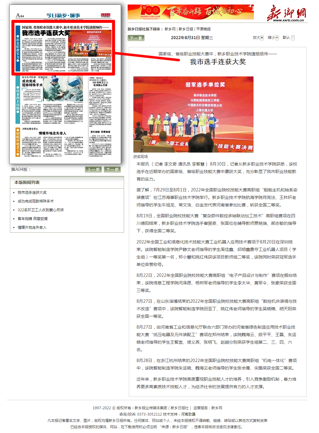 我市选手连获大奖 -《平原晚报》