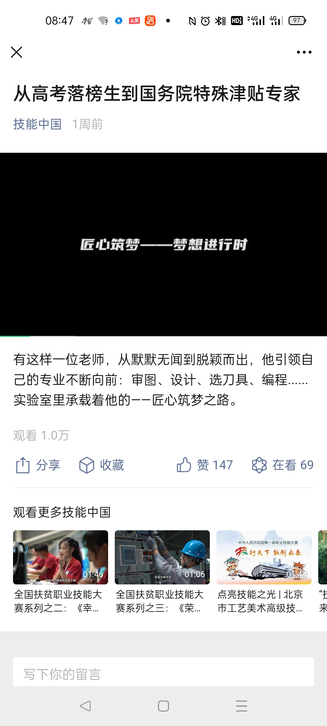 从高考落榜生到国贴专家----技能中国