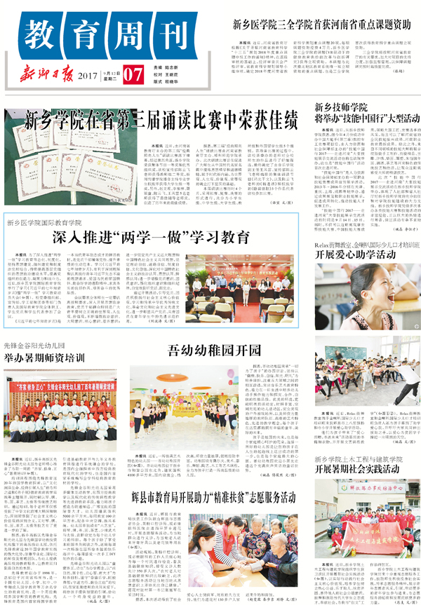 技能中国行将在新乡技师学院举行----《新乡日报》2017年9月12日