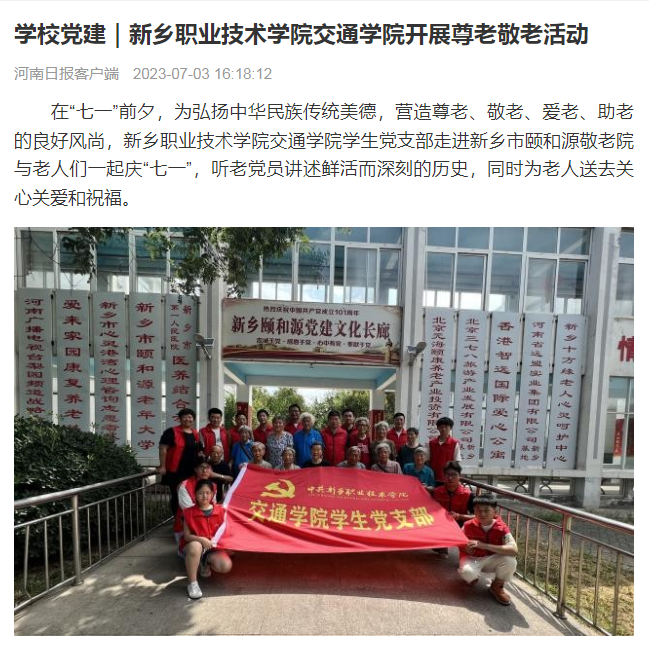 河南日报 | 新乡职业技术学院交通学院开展尊老敬老活动