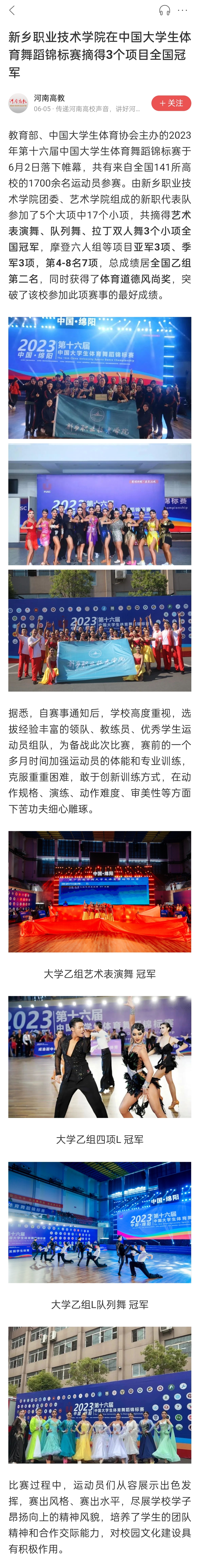 人民日报 | 新乡职业技术学院在中国大学生体育舞蹈锦标赛摘得3个项目全国冠军